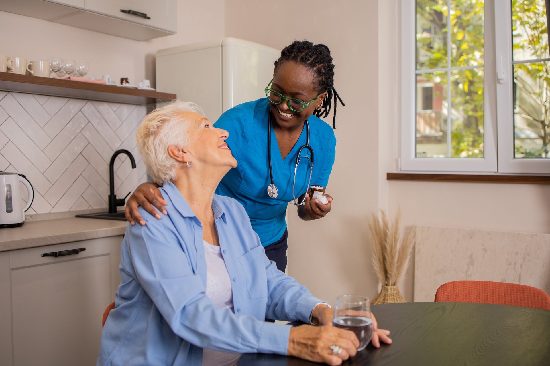Skilled nurses managing medications and health monitoring.